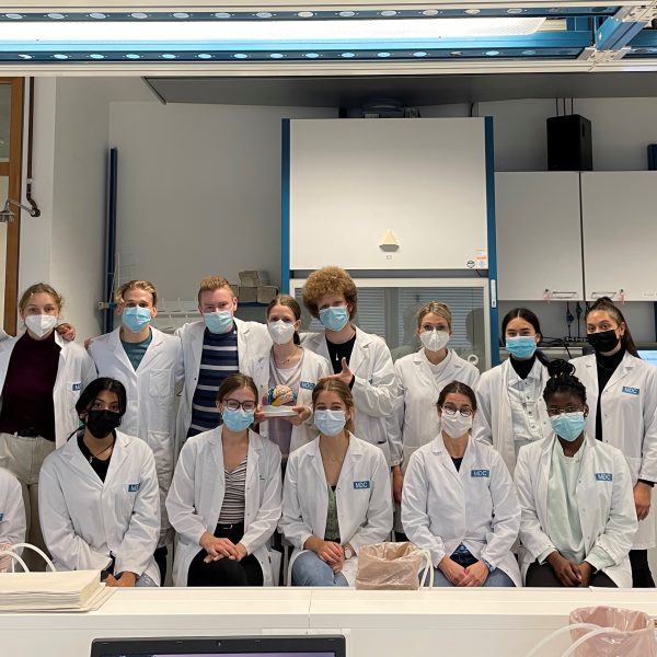 Das Gläserne Labor ist eine Bildungseinrichtung auf dem Wissenschafts- und Biotechnologiepark Campus Berlin-Buch. Zahlreiche Schülerlabore bieten Experimentierkurse zu den Themen Molekularbiologie, Zellbiologie, Neurobiologie, Chemie, Radioaktivität sowie Ökologie an. Mit rund 14.000 Teilnehmern pro Jahr zählt das 1999 gegründete Gläserne Labor zu den besucherstärksten Schülerlaboren der Bundesrepublik. Begleitet wurde diese Fahrt von Frau Blabl, Frau Frerichs und vier Praktikant*innen.