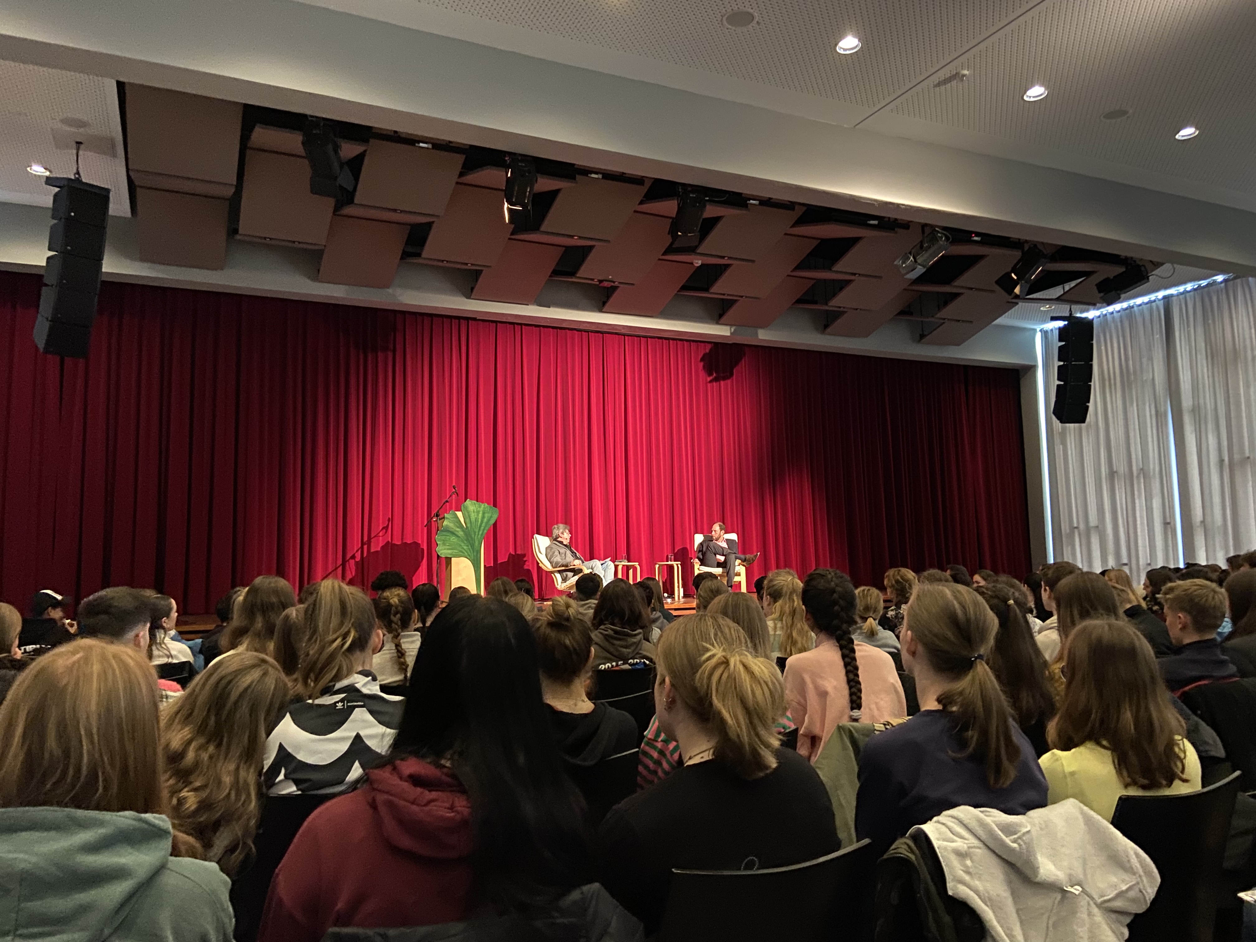 Am 14.04. hat der Französischkurs der Klasse 11e eine besondere Veranstaltung in der Goetheschule in Hannover besucht. Im Rahmen der Verleihung des Prix Liberté hatten die Schülerinnen und Schüler die Möglichkeit, sich auf Französisch mit dem Autoren und Journalisten Olivier Guez, der z.B. das Drehbuch zum Film „der Staat gegen Fritz Bauer“ verfasst hat und als Kulturberichterstatter aus Frankreich für die FAZ tätig ist, auszutauschen. Sie konnten Fragen zu seinen Werken und insbesondere zum Thema Europa stellen. Auch der Krieg in der Ukraine war Thema bei dieser Diskussion.