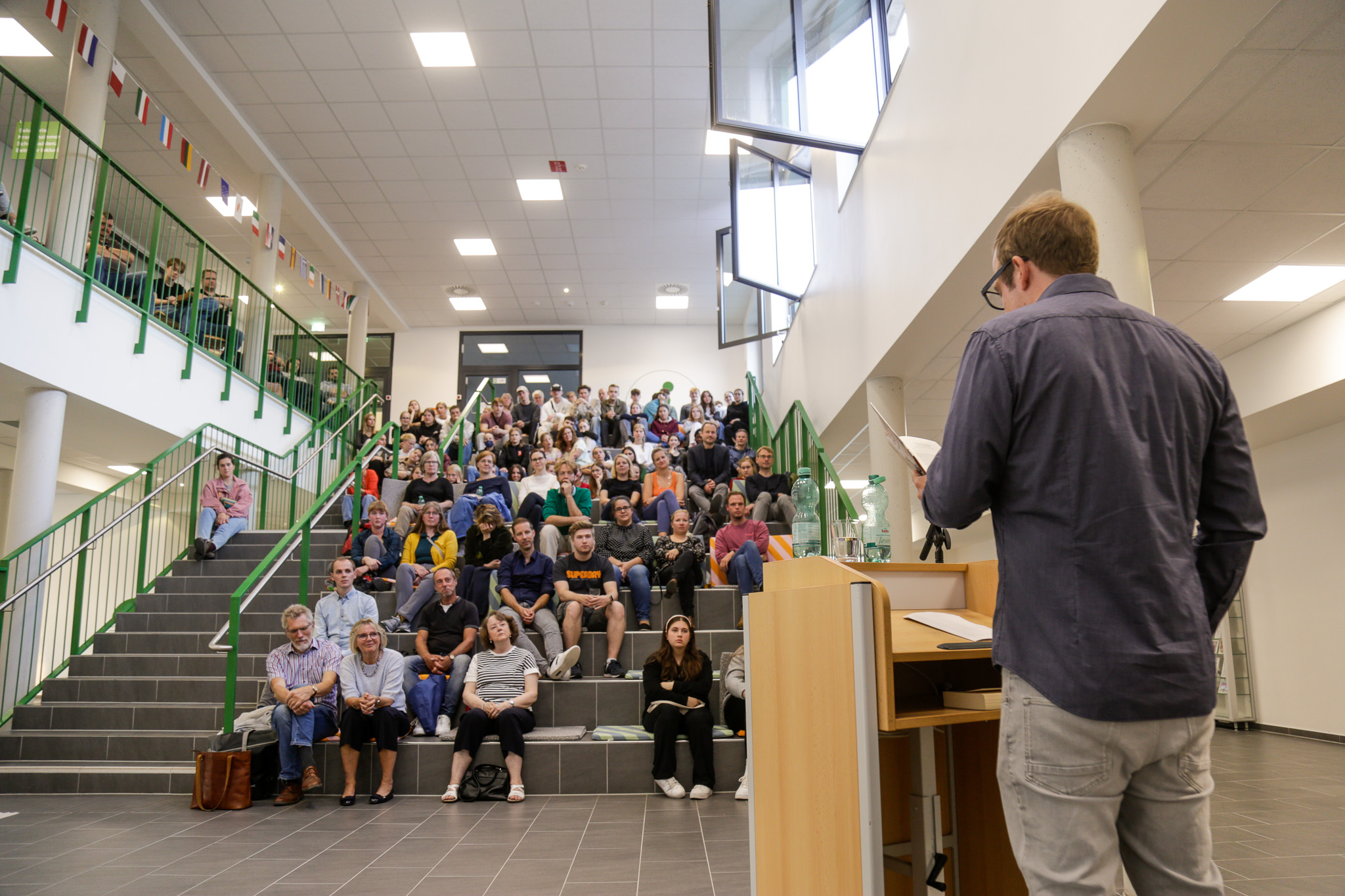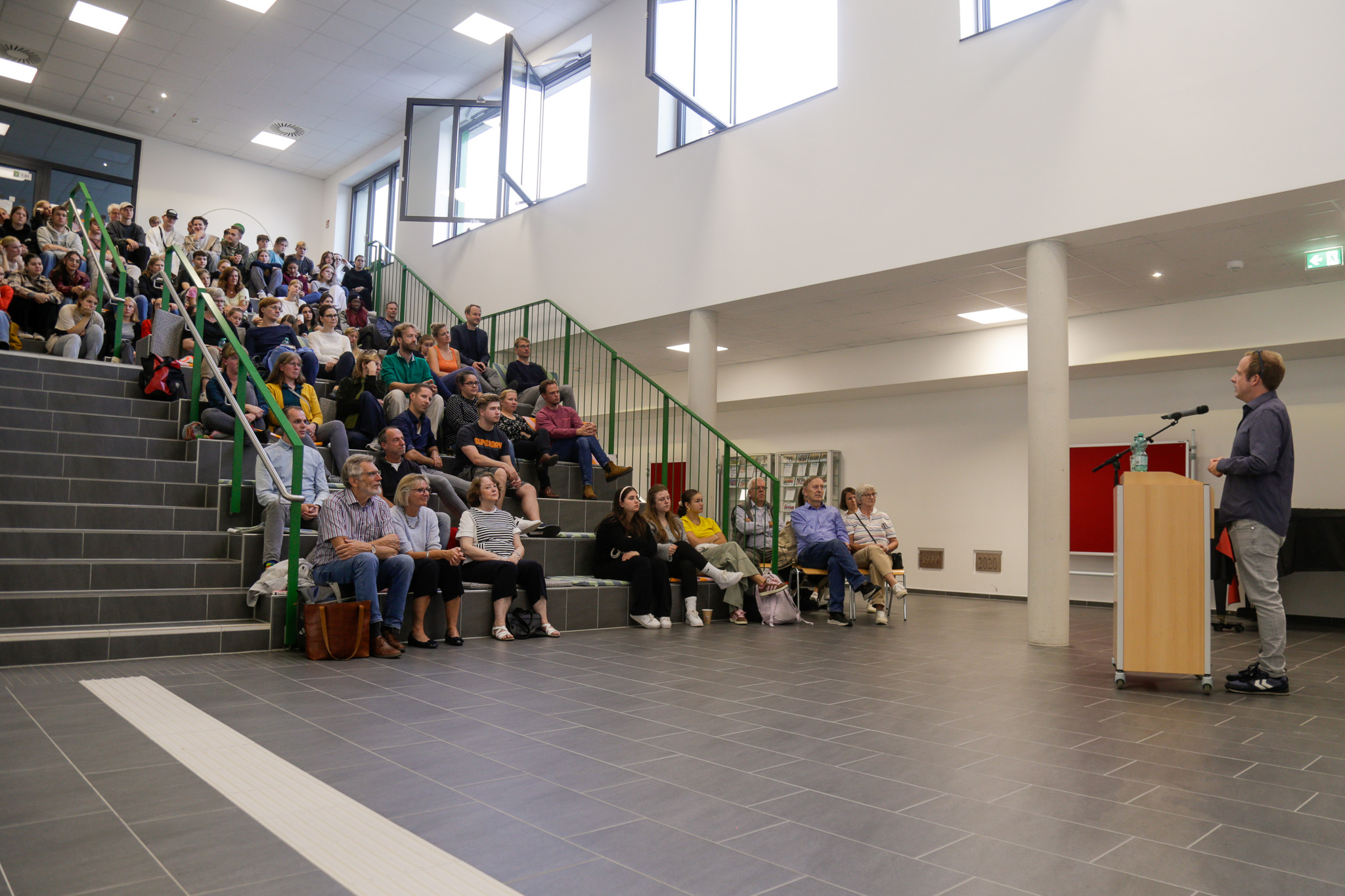 50 Jahre Gymnasium in Laatzen, seit 25 Jahren trägt die Schule den Namen Erich Kästner. Grund genug, sich einmal mit dem Namensgeber auseinanderzusetzen. Kästner galt als Antimilitarist, hat Anti-Kriegsgedichte geschrieben, aber dennoch Deutschland während der Nazi-Diktatur nicht verlassen. Ein gespaltener Charakter? Dieser Frage wollte die Schule nachgehen und hatte deshalb den Schriftsteller Tobias Lehmkuhl eingeladen, aus seinem Buch „Der doppelte Erich“ vorzulesen. Am 18.09.2024 war es soweit: Die „Universitätstreppe“ im Foyer war dicht besetzt und pünktlich um 18:00 Uhr eröffneten Alexandra, Luise, Joko, Josephine, Amelie und Junis aus der 5b den Abend mit dem Gedicht „Das verhexte Telefon“, das sie auswendig, fröhlich und gut betont vortrugen. Nach großem Applaus und der Begrüßung durch die Schulleiterin hatte Tobias Lehmkuhl das Wort, der wider Erwarten nicht vorlas, sondern anschaulich über Kästner erzählte. Es gelang ihm, gut verständlich und nachvollziehbar ein differenziertes Bild von Kästner zu vermitteln. Am Ende bekam das Publikum Gelegenheit, Fragen zu stellen, die selbstredend von dem Autor beantwortet wurden. Ein gelungener Einstieg in die Jubiläumsveranstaltungsreihe, die ihre Fortsetzung im schuleigenen Weihnachtsmarkt am Mi, 18.12.2024 findet.