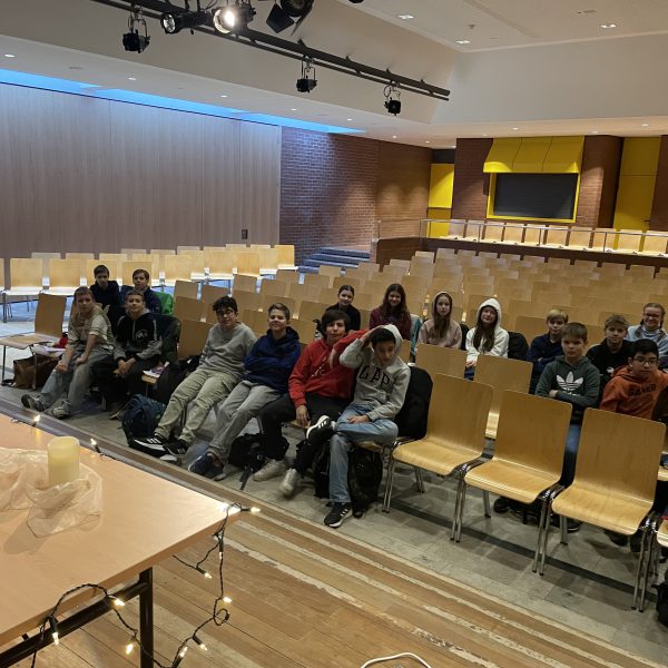 Folglich tummelten sich an diesem Nikolaustag (06.12.2024) zahlreiche Sechstklässlerinnen und Sechstklässler im (vor-)weihnachtlich geschmückten Forum, um live die Kür der besten Vorleserin/ des besten Vorlesers ihres Jahrgangs mitzuverfolgen. Die Jury hatte es bei all den starken Lesebeiträgen nicht leicht und schickte schließlich zwei FinalistInnen ins Stechen. Hier galt es – nach der eigens vorbereiteten Lektüre – auch eine völlig unbekannte Textpassage möglichst fehlerfrei und gut betont vorzulesen.