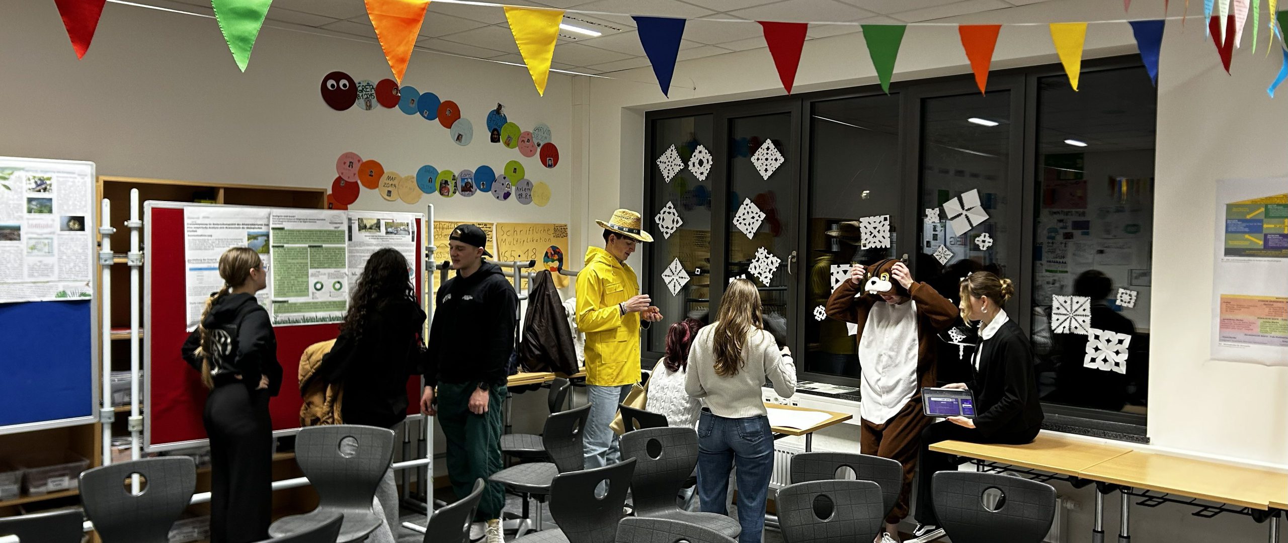 Nach einer kurzen Eröffnung begaben sich alle in die liebevoll gestalteten Räume, wo die Schülerinnen und Schüler des 13. Jahrgangs ihre Arbeiten präsentierten und zu Gesprächen einluden. Die Themen reichten von naturwissenschaftlichen Fragen über gesellschaftliche Herausforderungen bis hin zu politischen und psychologischen Fragestellungen. Die Präsentationen gaben einen umfassenden Einblick in die Vielfalt der angebotenen Seminarfächer.